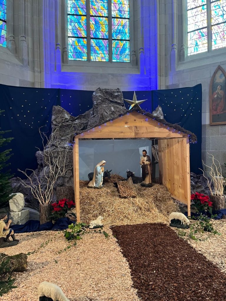 On a vu des vitraux, on a vu la crèche. On a vu des statues : Saint Paul et Saint Clair.